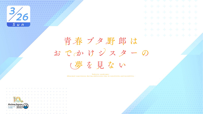 2023年3月に開催予定のAnimeJapan2023にて開催予定の「青春ブタ野郎はおでかけシスターの夢を見ない」のステージイベントの追加出演者が発表になりました。